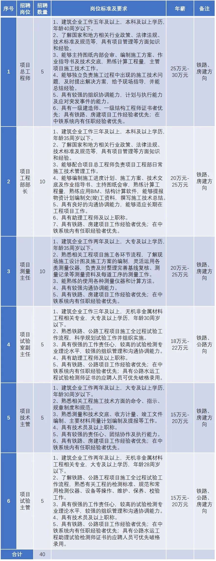 為進(jìn)一步強(qiáng)化中鐵上海工程局市政環(huán)保公司專業(yè)能力、擴(kuò)大企業(yè)生產(chǎn)規(guī)模,根據(jù)公司生產(chǎn)管理需要,本著“發(fā)掘人才、吸納人才、塑造人才、發(fā)展人才”理念,現(xiàn)面向社會(huì)誠摯招聘鐵路、房建、公路方向技術(shù)管理人員。
