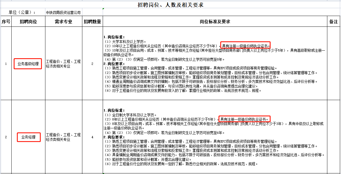 中鐵四局集團投資運營有限公司招聘業(yè)務(wù)經(jīng)理、項目公司部門經(jīng)理等管理人員10人,第一批次2022年9月15日截止。