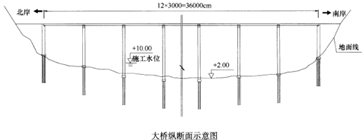 因為水位較深,但該河段不通航,且施工單位無大型船只;且施工單位有鋼管、型管、貝雷架等材料,所以可搭設(shè)棧橋和平臺。