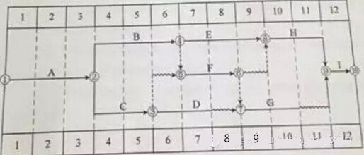 事件四;主體結(jié)構(gòu)驗(yàn)收后,施工單位對(duì)后續(xù)工作進(jìn)度以時(shí)標(biāo)網(wǎng)絡(luò)圖形式做出安排,如下圖所示(時(shí)間單位:周)。