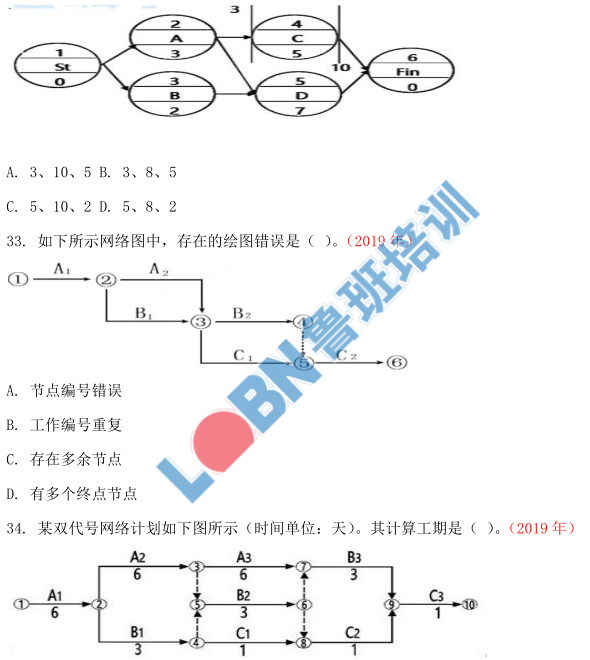 節(jié)點(diǎn)的通路稱為線路,選項(xiàng) A 錯誤。在一個(gè)網(wǎng)絡(luò)圖中可能有很多條線路,線路中各項(xiàng)工作持