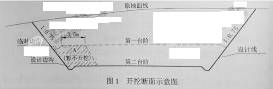 某施工單位承接了某丘陵區(qū)一級公路路基施工任務(wù)。施工單位編制了路基施工組織設(shè)計(jì),并對施工組織設(shè)計(jì)進(jìn)行了優(yōu)化,重點(diǎn)優(yōu)化了施工方案,主要包括施工方法的優(yōu)化、施工作業(yè)組織形式的優(yōu)化、施工勞動組織的優(yōu)化。技術(shù)人員根據(jù)路基橫斷面計(jì)算出土石方的“斷面方數(shù)”, 經(jīng)復(fù)核后,進(jìn)行土石方縱向調(diào)配。調(diào)配時(shí)考慮到技術(shù)經(jīng)濟(jì)條件,盡量在經(jīng)濟(jì)合理的范圍內(nèi)移挖作填,使路塹和路堤中土石方數(shù)量達(dá)到平衡,減少了棄方與惜方。全標(biāo)段路基挖方土質(zhì)為普通土,平均運(yùn)距50m的土方有150000m³,平均運(yùn)距200m的土方有100000m³,平均運(yùn)距3000m的土方有80000m³ K5+630~K5+810的平均挖方深度7m左右,施工單位采用的某一開挖斷面示意如圖1,要求上下錯(cuò)臺同時(shí)掘進(jìn)。