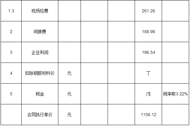 1.已標(biāo)價(jià)工程量清單中,鋼筋制作與安裝單價(jià)分析如表4所示: