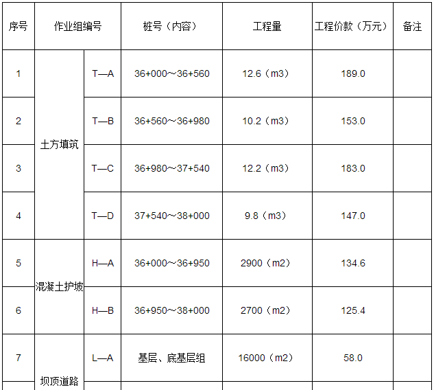 事件一:施工單位根據(jù)現(xiàn)場(chǎng)具體情況,將土方填筑、混凝土護(hù)坡、堤頂?shù)缆?、草皮護(hù)坡工程施工分別劃分為4個(gè)、2個(gè)、2個(gè)、2個(gè)作業(yè)組,具體情況如表5-2所示。