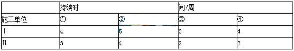 施工分為Ⅰ、Ⅱ、Ⅲ、Ⅳ、Ⅴ5個部分,Ⅰ、Ⅱ作業(yè)時間見下表,Ⅲ、Ⅳ、Ⅴ作業(yè)均為1周。