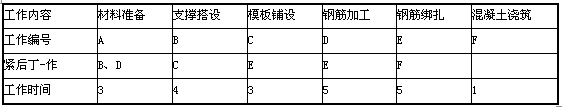 事件2:工程樓板組織分段施工,某一段各工作的邏輯關(guān)系見(jiàn)下表: