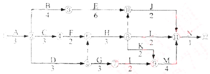 【背景資料】某民用建筑工程,經公開招標,某施工總承包單位中標,建設單位與施工總單位根據《建設工程施工合同(示范文本)》簽訂了合同。經總監(jiān)理工程師批準的總施工進度計劃如圖所示(時間單位:天),各項工作均按最早開始時間安排且勻速施工。