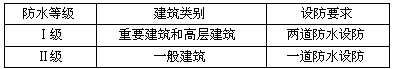 根據(jù)《屋面工程技術(shù)規(guī)范》GB 50345-2012 第 3.0.5 條規(guī)定,屋面防水工程應(yīng)根據(jù)建筑物的類別、重要程度、使用功能要求確定防水等級,并應(yīng)按相應(yīng)等級進(jìn)行防水設(shè)防;時(shí)防水有特殊要求的建筑屋面,應(yīng)進(jìn)行專項(xiàng)防水設(shè)計(jì)。屋面防水等級和設(shè)防要求應(yīng)符合下表的規(guī)定。