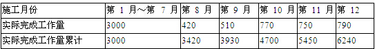 經(jīng)業(yè)主工程師代表簽認(rèn)的 B 承包商實(shí)際完成的工作量(第 1 月~第 12 月)見下表。