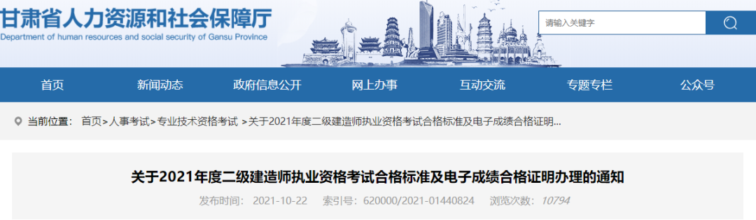 各市州人力資源和社會保障局,省直及中央在甘有關(guān)單位人事(干部)處:現(xiàn)將2021年度我省二級建造師執(zhí)業(yè)資格考試成績合格標(biāo)準(zhǔn)及電子合格證明辦理相關(guān)事宜通知如下: