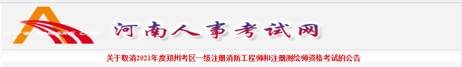 關(guān)于取消2021年度鄭州考區(qū)一級注冊消防工程師和注冊測繪師資格考試的公告
