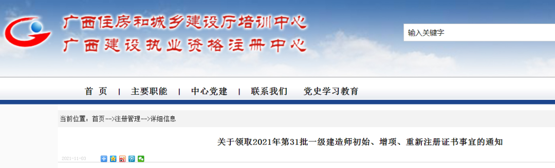 近日,廣西住建廳培訓(xùn)中心發(fā)布關(guān)于關(guān)于領(lǐng)取2021年第31批一級建造師初始、增項、重新注冊證書事宜的通知,部分一級建造師注冊材料已通過審核,可領(lǐng)取證書。