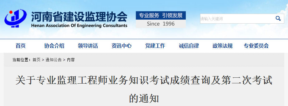 11月18日舉行的專業(yè)監(jiān)理工程師業(yè)務(wù)知識考試,成績今日公布。請參加考試的學(xué)員登陸協(xié)會網(wǎng)站,在“河南省建設(shè)監(jiān)理從業(yè)人員教育培訓(xùn)系統(tǒng)”里查詢成績,合格標(biāo)準(zhǔn)是105分。