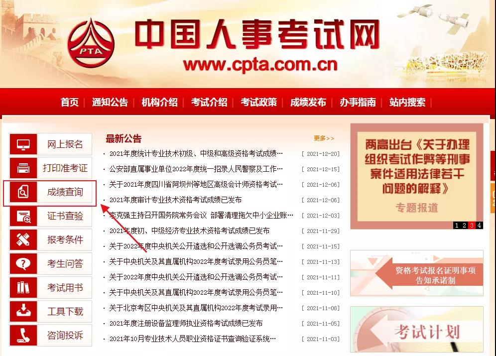 1?? 進(jìn)入中國(guó)人事考試網(wǎng),點(diǎn)擊成績(jī)查詢。