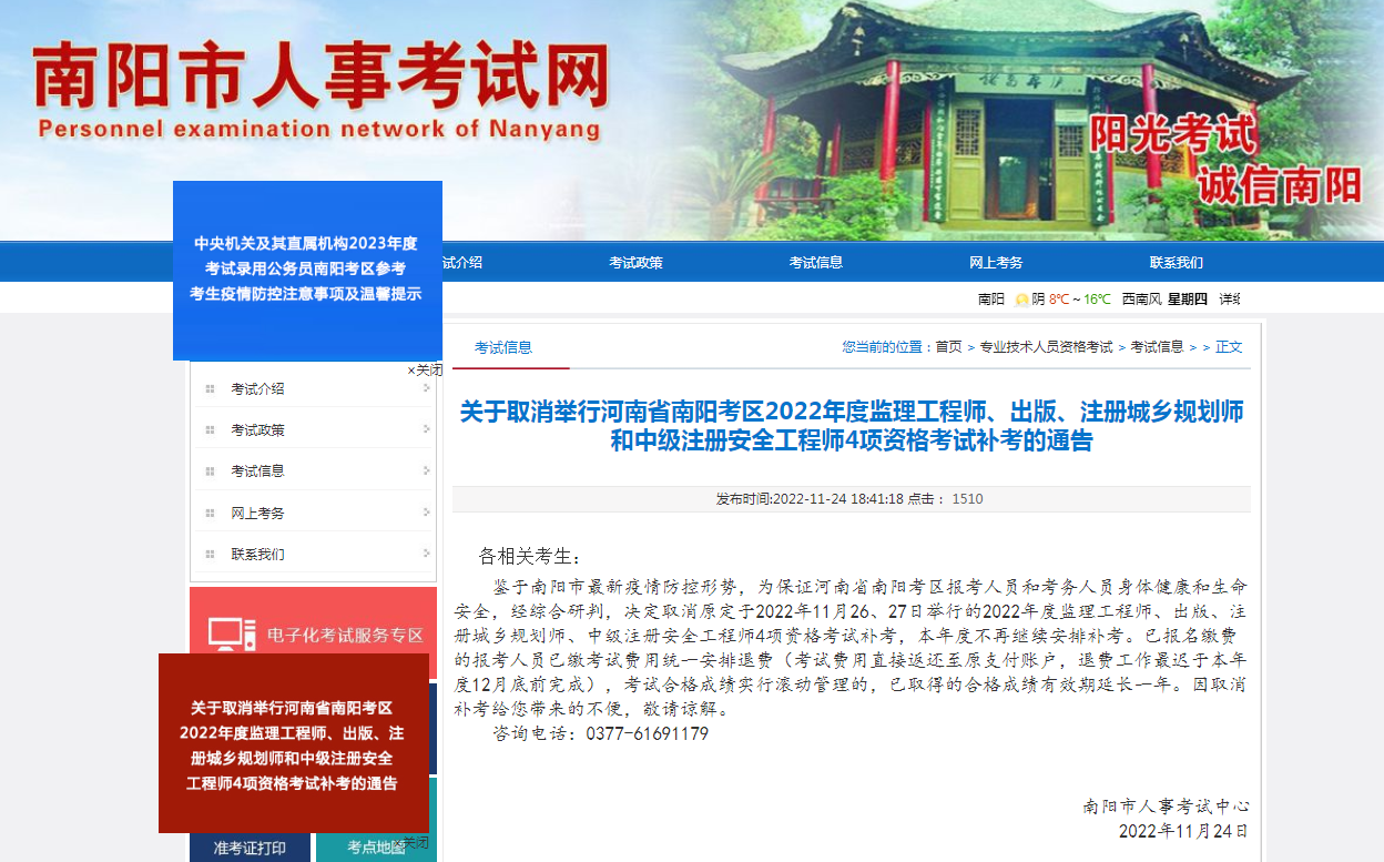 南陽:取消2022年注安、監(jiān)理等4項考試補考!