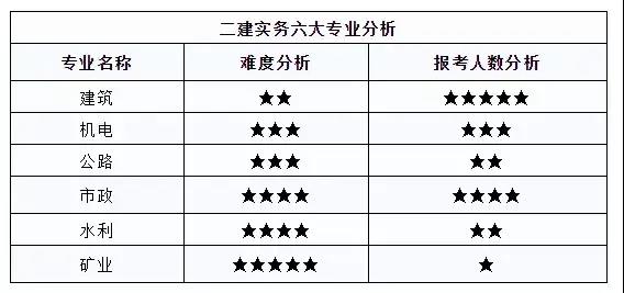 為了給2021年準備二建的朋友提供專業(yè)選取參考,我們也給大家整理一份熱度+專業(yè)難度分析表: