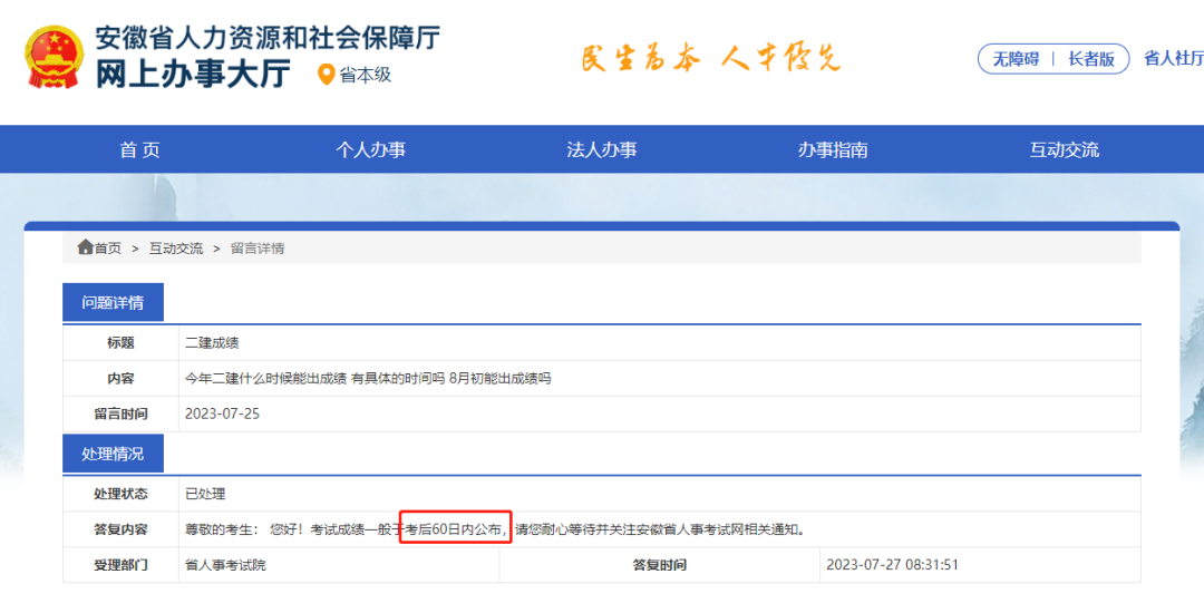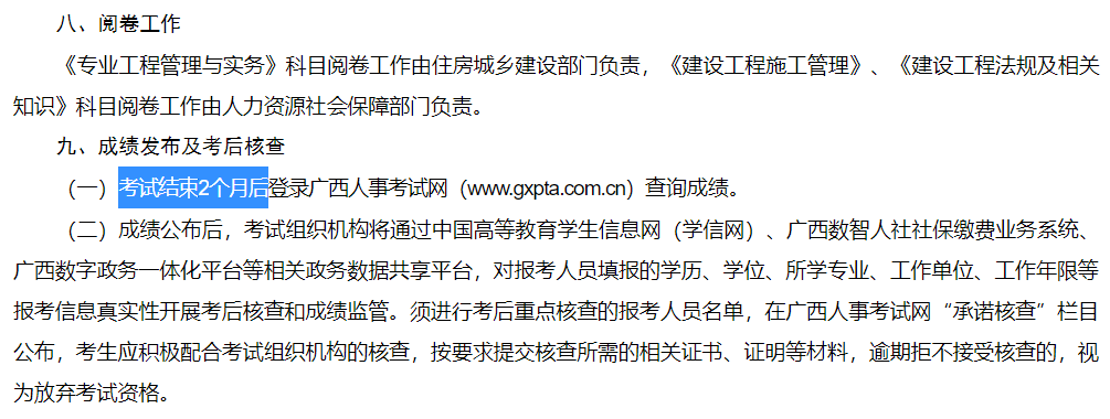 從廣西考務(wù)通知,考試結(jié)束2個(gè)月后可登錄官網(wǎng)查詢廣西2023年二建成績(jī)!按照兩個(gè)月時(shí)間計(jì)算,8月4日成績(jī)或?qū)⒐汲煽?jī)!