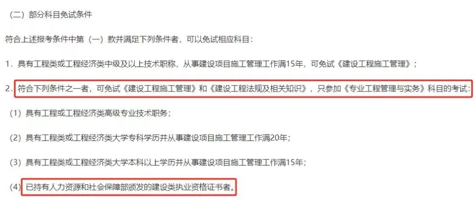 持有一造、一建、監(jiān)理證書可免考二建基礎(chǔ)科目!