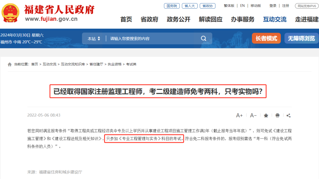 已持有一級(jí)造價(jià)工程師、一級(jí)建造師、監(jiān)理工程師等證書,準(zhǔn)備在福建省報(bào)考二建的考生有福了!
