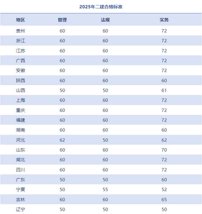 同時,以上大部分地區(qū)的二建合格線也已公布,另外西藏、青海、內蒙古、新疆的二建合格標準需待有關部門確定后另行公布。