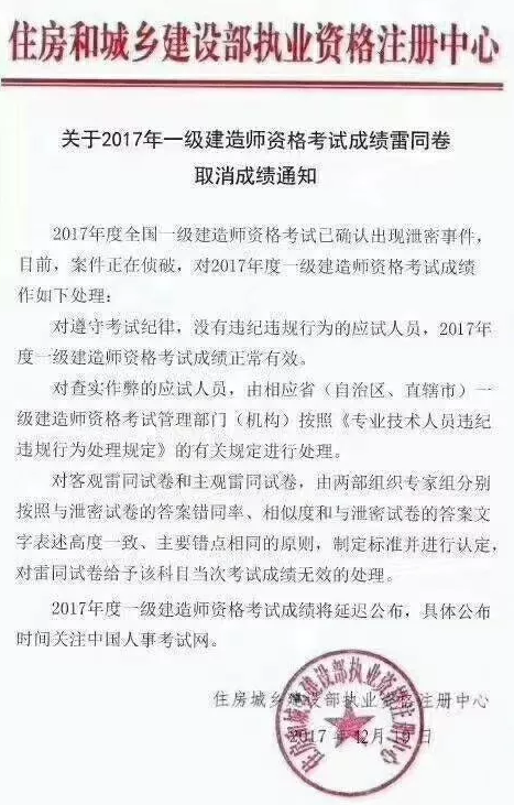 導(dǎo)語:因?yàn)?017年一級(jí)建造師泄題風(fēng)波仍未公布處理結(jié)果,經(jīng)核實(shí)網(wǎng)上流傳的那份意見為偽造,2017年一級(jí)建造師成績公布仍需時(shí)日。
