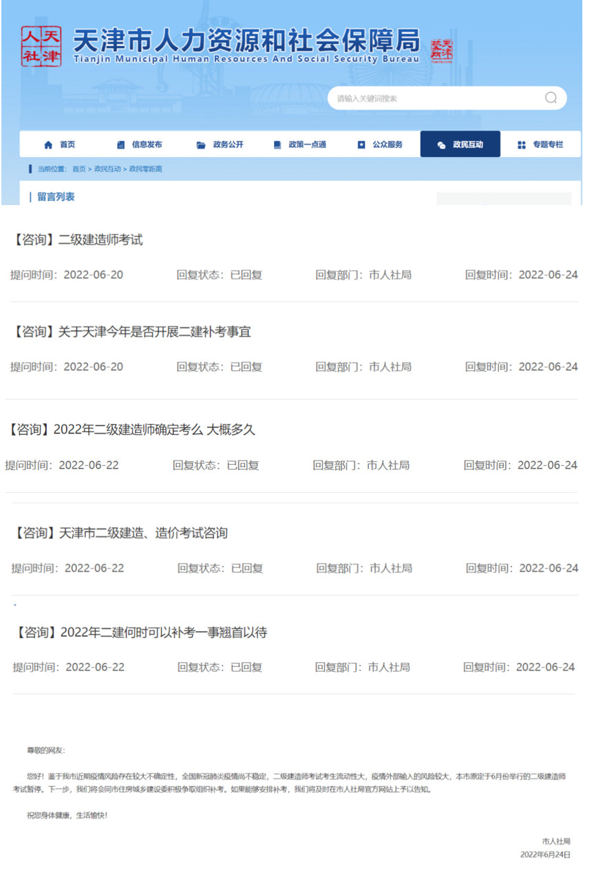 最近,有很多考生在天津人社局咨詢今年是否可以重新組織二建考試,官方給出了統(tǒng)一的答復(fù)。(注:信息來源于天津市人力資源和社會(huì)保障局。)