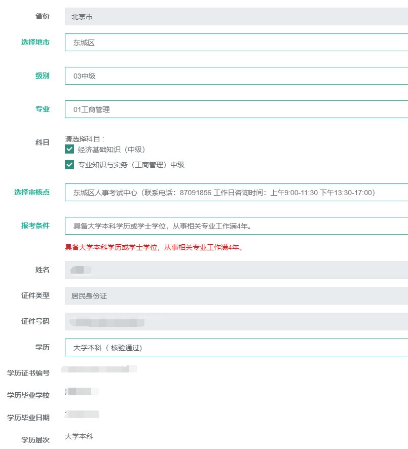 根據(jù)個(gè)人情況,選擇是否取得了初級(jí)經(jīng)濟(jì)師證書。沒(méi)有,可不填。(注意,若是最高學(xué)歷為高中或中專學(xué)歷的考生,必須滿足先取得初級(jí)經(jīng)濟(jì)師證書之后工作年限滿10年的要求方能報(bào)考中級(jí)經(jīng)濟(jì)師)