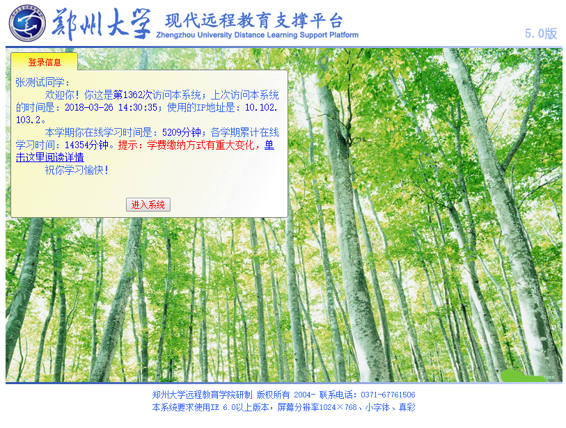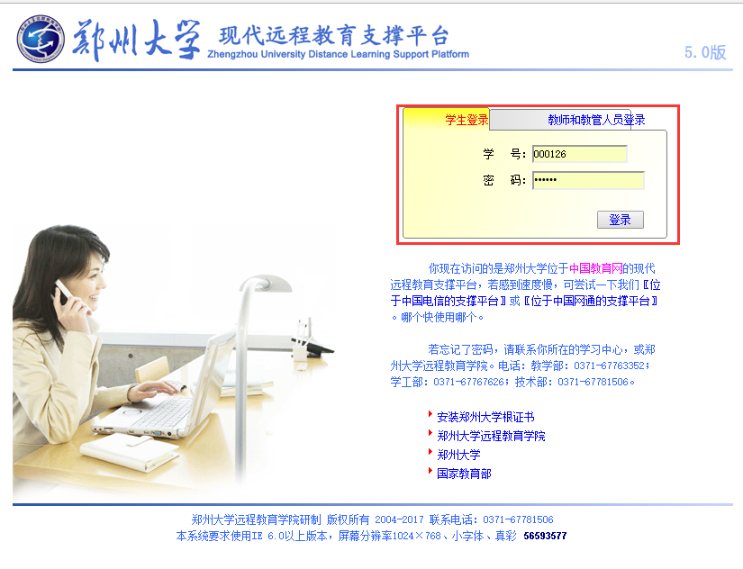 網(wǎng)上考試平臺(tái)學(xué)生登陸需要從鄭州大學(xué)現(xiàn)代遠(yuǎn)程教育支撐平臺(tái)中跳轉(zhuǎn)。在瀏覽器地址欄中輸入http://dls.zzu.edu.cn/,進(jìn)入鄭州大學(xué)現(xiàn)代遠(yuǎn)程教育支撐平臺(tái),在頁(yè)面的登錄框點(diǎn)擊“登陸”按鈕,鄭州大學(xué)現(xiàn)代遠(yuǎn)程教育支撐平臺(tái)首頁(yè)登錄如下圖所示: