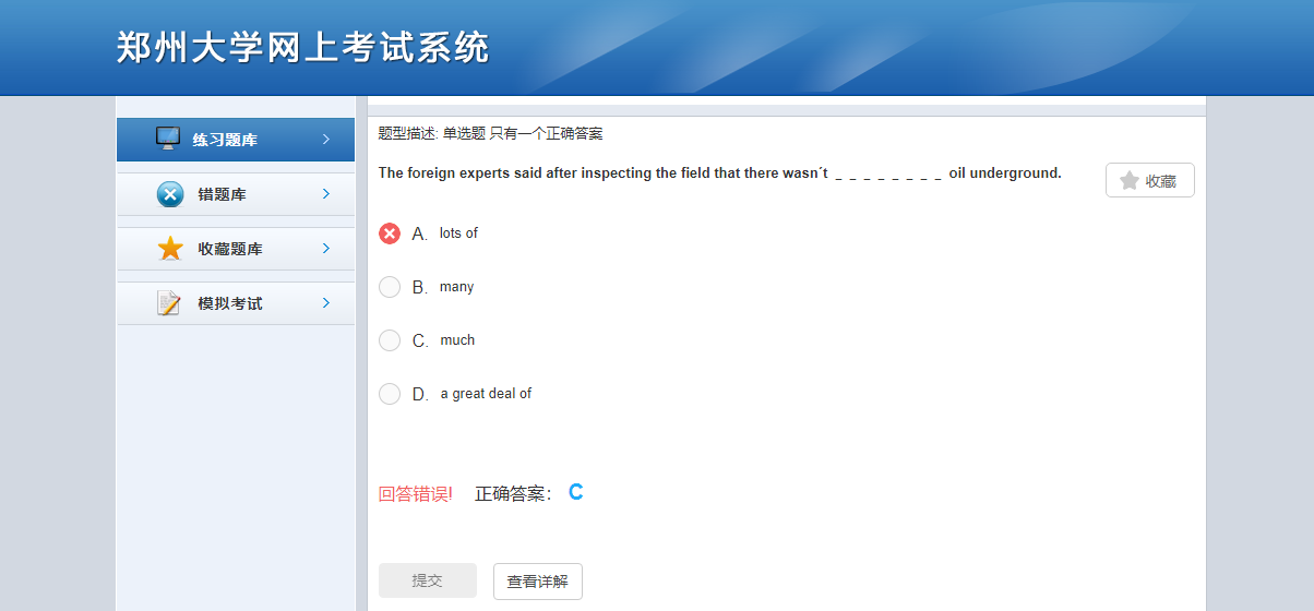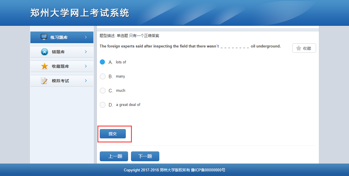 答完當(dāng)前試題后點(diǎn)擊【提交】,客觀題系統(tǒng)會(huì)自動(dòng)判斷答案,并給出正確選項(xiàng)。主觀題答題后可查看正確答案。