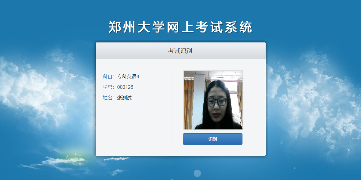 賬號(hào)密碼驗(yàn)證通過(guò)后,考試系統(tǒng)還需要對(duì)考生面部進(jìn)行識(shí)別,點(diǎn)擊【識(shí)別】按鈕,并按系統(tǒng)提示完成相應(yīng)動(dòng)作。系統(tǒng)在計(jì)時(shí)倒計(jì)時(shí)讀秒完成后確認(rèn)考生為本人時(shí)方可進(jìn)入考試,如下圖所示:
