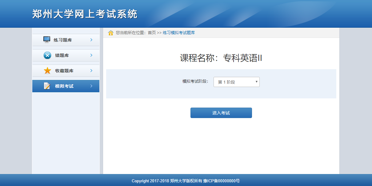 學(xué)生可點(diǎn)擊開(kāi)始考試進(jìn)行模擬考試練習(xí)。