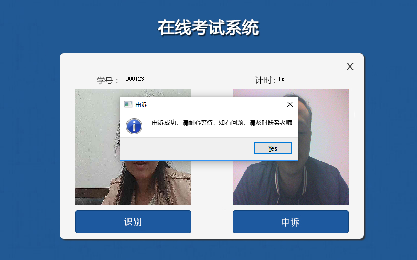 如本人識(shí)別不通過(guò)的情況下,可點(diǎn)擊【申訴】按鈕進(jìn)行照片申訴,管理員審核通過(guò)后方可再次進(jìn)行人臉識(shí)別比對(duì),比對(duì)通過(guò)后方能進(jìn)行網(wǎng)上考試。