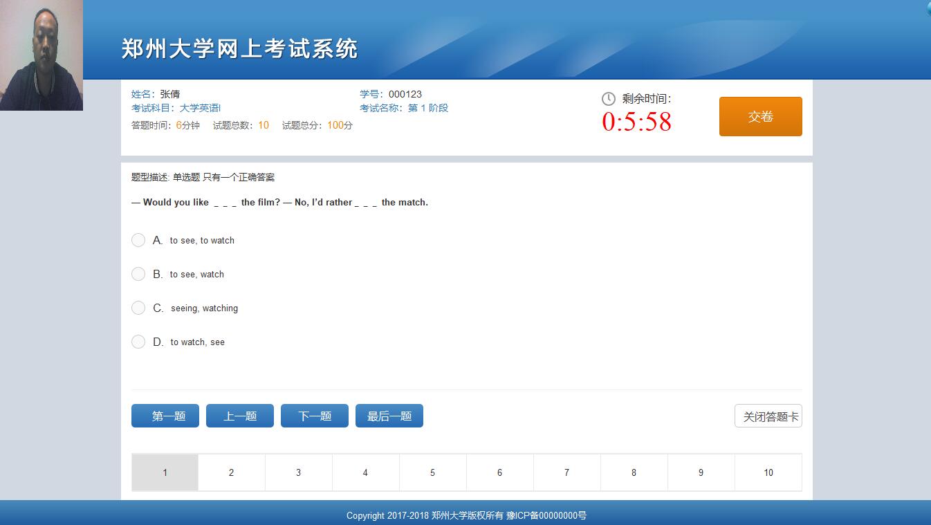 1、必須學(xué)生本人參加考試,考試環(huán)境必須相對(duì)封閉,考試過(guò)程中盡量避免攝像頭中出現(xiàn)其他人員。