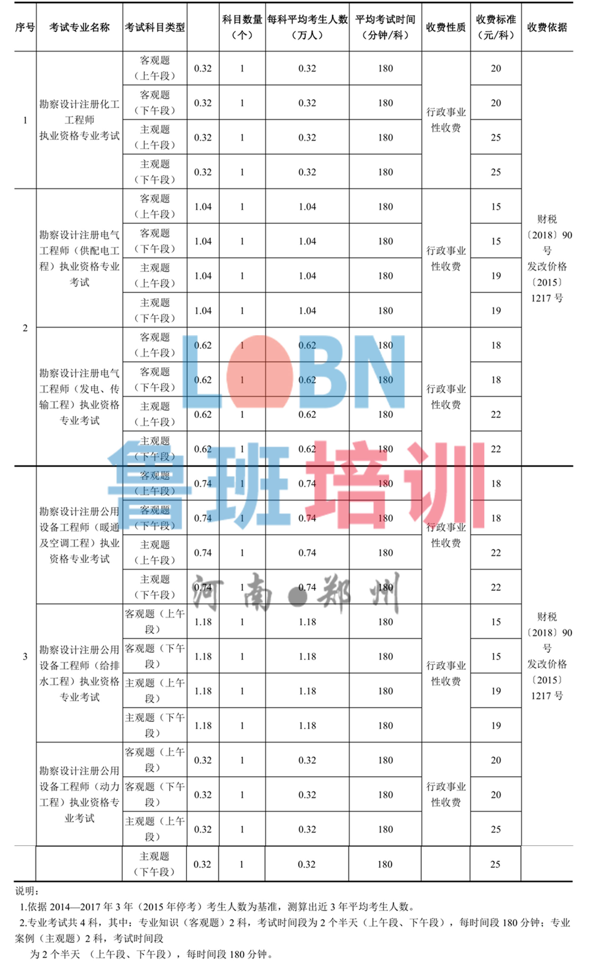根據(jù)《財(cái)政部 國(guó)家發(fā)展改革委關(guān)于同意收取勘察設(shè)計(jì)注冊(cè)化工工程師、注冊(cè)電氣工程師和注冊(cè)公用設(shè)備工程師執(zhí)業(yè)資格專(zhuān)業(yè)考試考務(wù)費(fèi)的復(fù)函》(財(cái)稅〔2018〕90號(hào))和《國(guó)家發(fā)展改革委 財(cái)政部關(guān)于改革全國(guó)性職業(yè)資格考試收費(fèi)標(biāo)準(zhǔn)管理方式的通知》(發(fā)改價(jià)格〔2015〕1217號(hào))的規(guī)定和要求,現(xiàn)將新列入我部行政事業(yè)性收費(fèi)項(xiàng)目的勘察設(shè)計(jì)注冊(cè)化工工程師、注冊(cè)電氣工程師和注冊(cè)公用設(shè)備工程師3項(xiàng)執(zhí)業(yè)資格專(zhuān)業(yè)考試考務(wù)費(fèi)收費(fèi)標(biāo)準(zhǔn)予以公布。