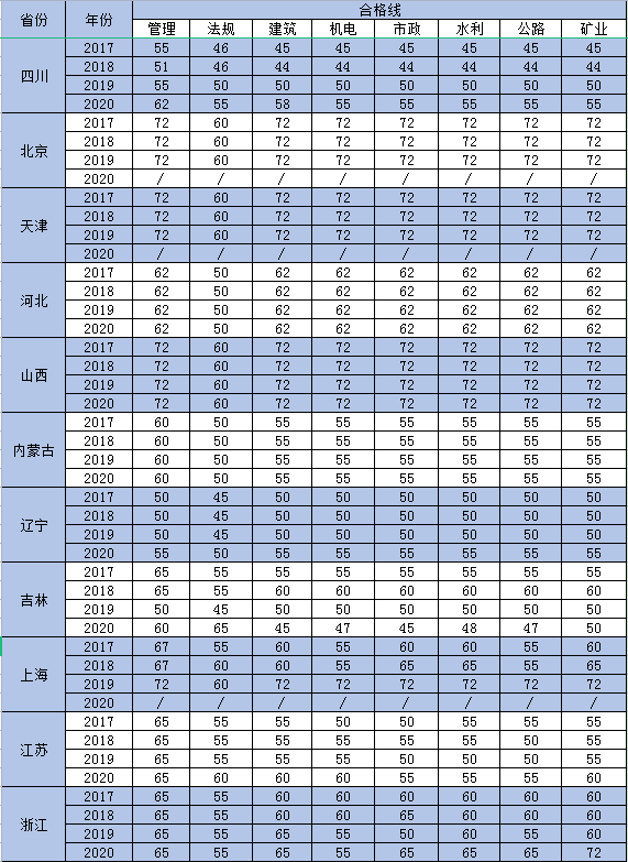 二建近四年合格分?jǐn)?shù)線匯總