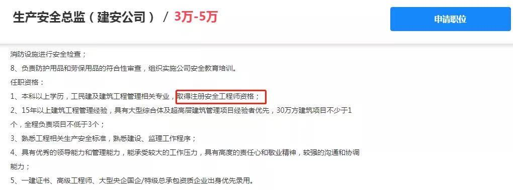 中建二局曾發(fā)布文件,提到取得注冊(cè)安全工程師執(zhí)業(yè)資格人員將會(huì)報(bào)銷培訓(xùn)費(fèi)用,一次性獎(jiǎng)勵(lì)3萬元,還有每個(gè)月的2000元補(bǔ)助,崗位工資直接上調(diào)一級(jí)