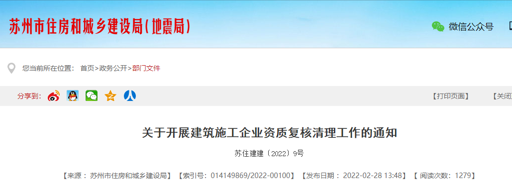 蘇州:對189家施工企業(yè)資質(zhì)進(jìn)行復(fù)核清理!