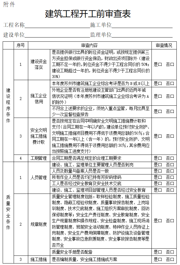 附件:建筑工程開工前審查表