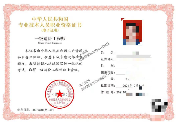 一級(jí)造價(jià)工程師電子證書一般是在成績出來一個(gè)月后就可以下載打印,比如:2021年一級(jí)造價(jià)工程師成績查詢時(shí)間為2021年12月23日,2021年一級(jí)造價(jià)工程師電子證書打印入口開通時(shí)間為2022年1月25日。