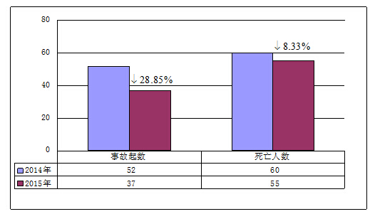 圖1 2015年7月事故起數(shù)和死亡人數(shù)與2014年同期對比