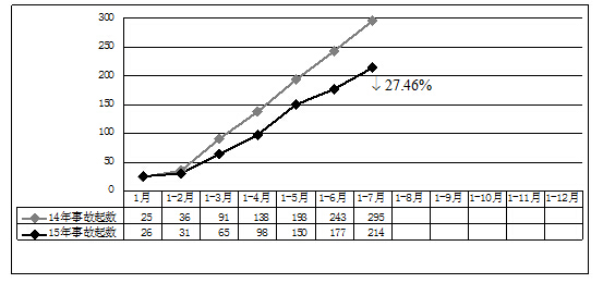 圖2 2015年1-7月事故起數(shù)與2014年同期對比