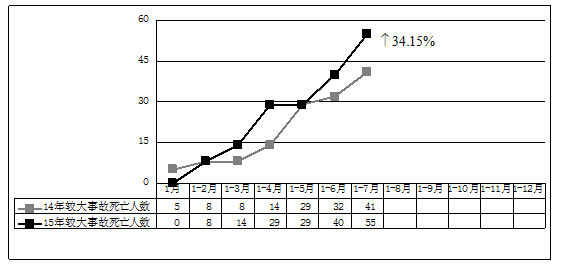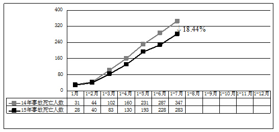 圖3 2015年1-7月事故死亡人數(shù)與2014年同期對比