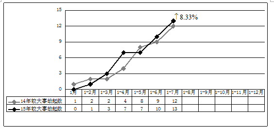 圖5 2015年1-7月較大事故起數(shù)與2014年同期對比