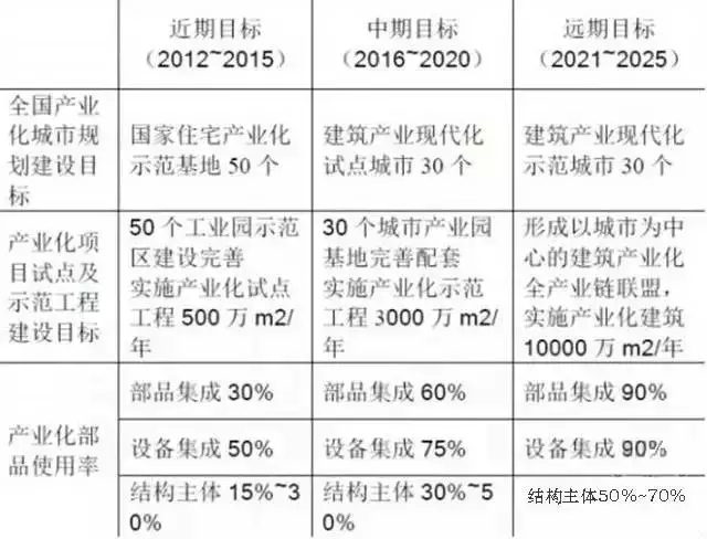 住建部將出臺(tái)政策推動(dòng)建筑產(chǎn)業(yè)現(xiàn)代化,初步確定的發(fā)展目標(biāo)是: