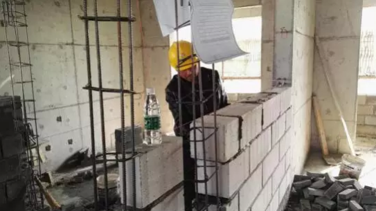 由于施工場地狹小,現(xiàn)場堆料困難??偘鶕?jù)分包提出的需求來進(jìn)行進(jìn)料,需求多少,給多少。為應(yīng)對分包材料浪費(fèi)的問題,總包對分包采取了砌筑廢料的懲罰制度,這使得有些分包在砌筑時不按規(guī)范要求進(jìn)行砌筑。再加上現(xiàn)場進(jìn)度緊張,二次結(jié)構(gòu)整體砌筑質(zhì)量未完全達(dá)到理想效果。