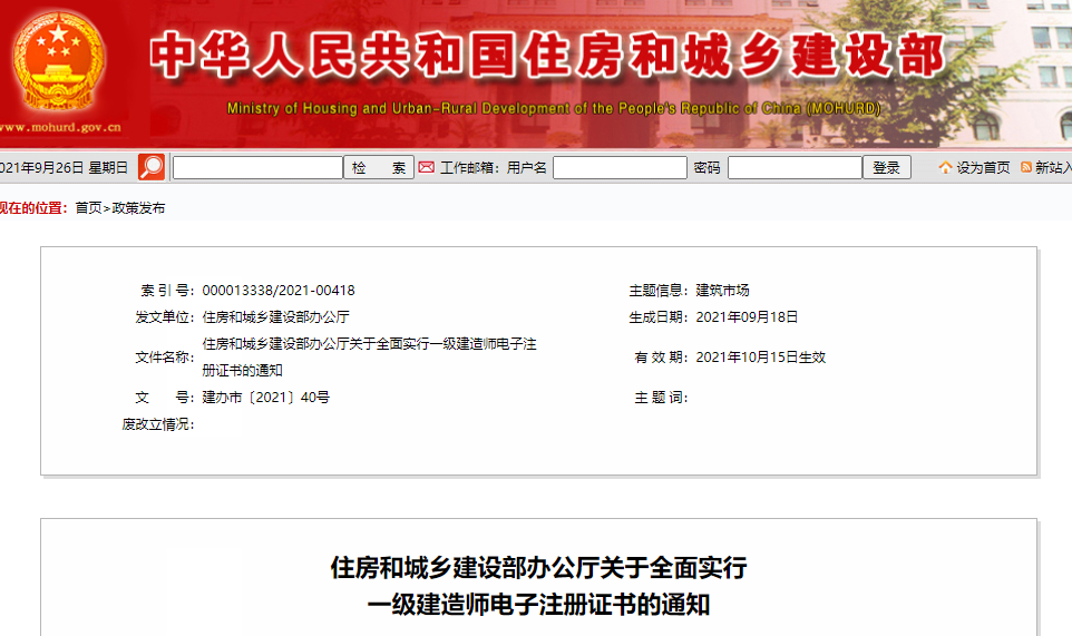 剛剛,住建部發(fā)布通知,決定在全國(guó)范圍內(nèi)實(shí)行一級(jí)建造師電子注冊(cè)證書(shū),并開(kāi)展延續(xù)注冊(cè)工作。