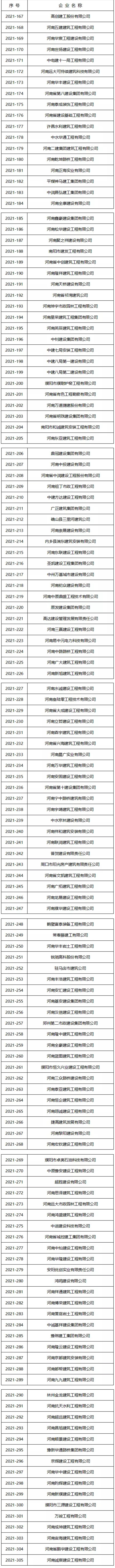 2021年度第二批河南省建筑業(yè)AAA級(jí)信用企業(yè)名單