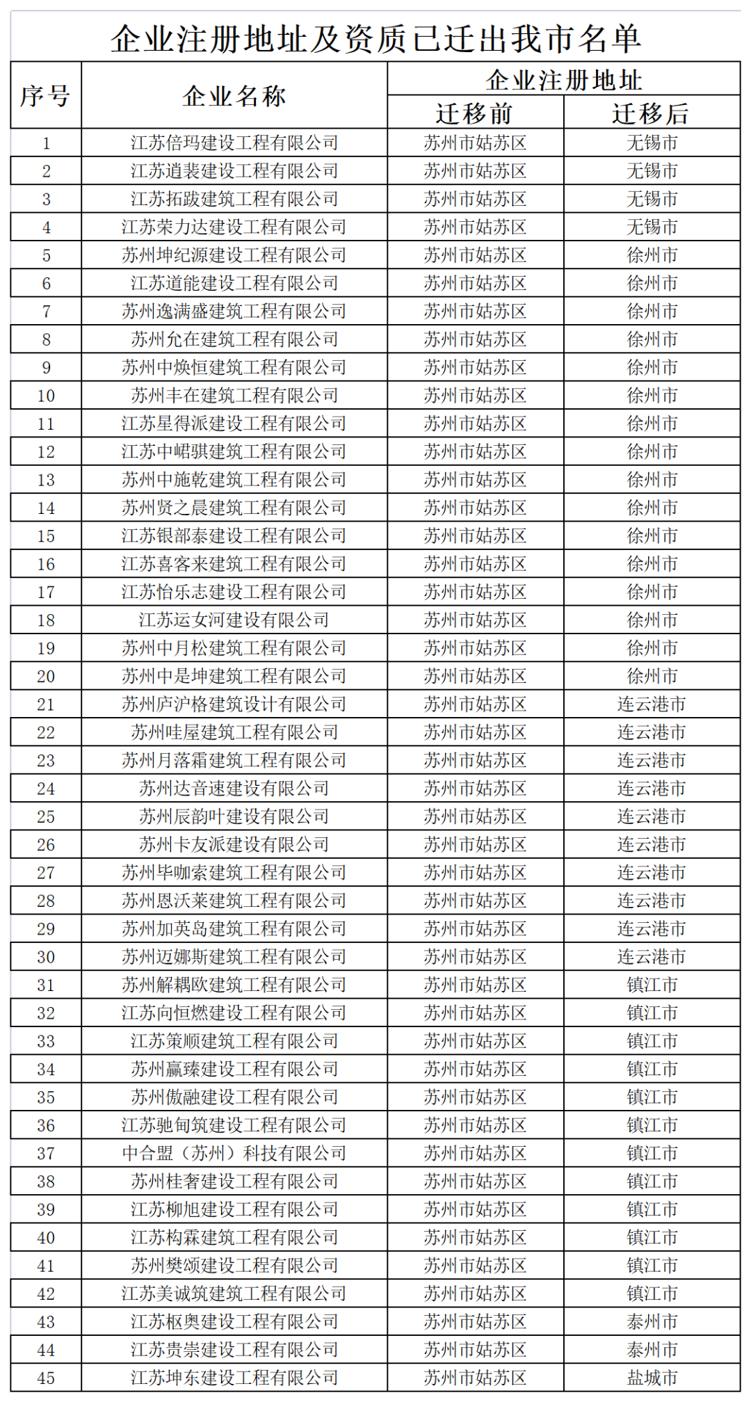 有45家企業(yè)注冊地址及資質(zhì)已遷出我市;