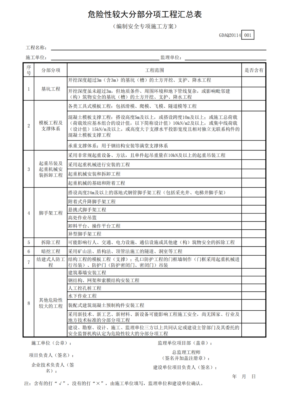 2.超過(guò)一定規(guī)模的危險(xiǎn)性較大分部分項(xiàng)工程匯總表